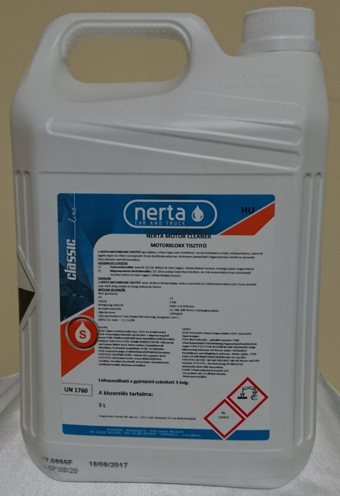 A Nerta Motorblokk tisztító egy hatásos, erősen lúgos tisztítószer, amely különösen a motor zsírtalanítására, valamint egyéb olajos és erősen szennyezett részek tisztítására alkalmas. Különösen javasolható magasnyomású tisztitó és porlasztó készülékekkel való felhasználásra.
