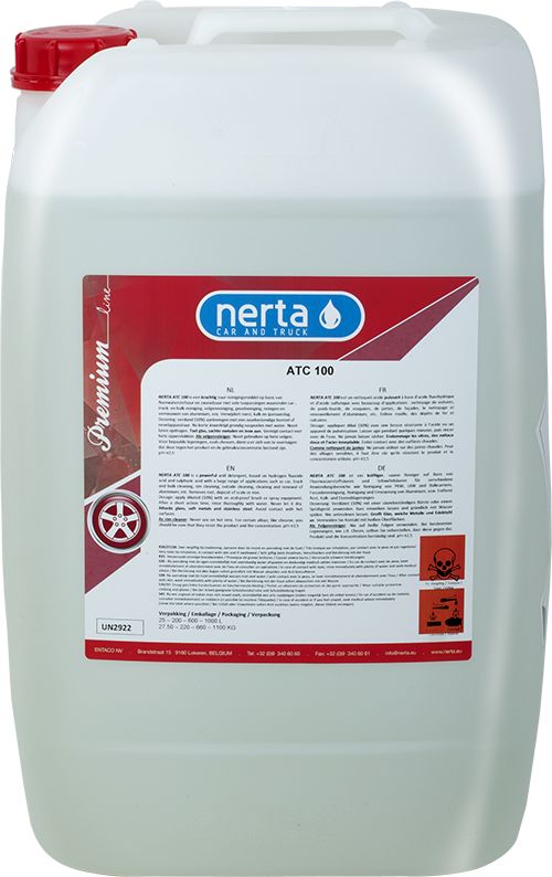A NERTA ATC 100 egy erősen savas kémhatású, fluorhidrogénsav alapú tisztítószer.